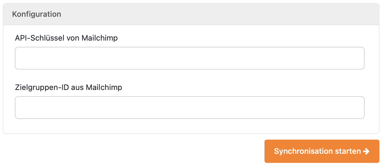 - Dort hinterlegen Sie den API-Schlüssel sowie Ihre Zielgruppen-ID aus Mailchimp.